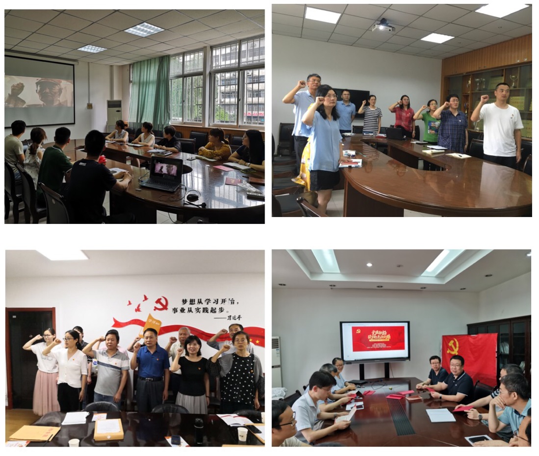 活动伊始,各支部党员集体观看了微视频《我宣誓》,视频中激昂的旋律和震撼的画面让参会党员为先烈们奋不顾身为人民谋幸福、为民族谋复兴的精神所感动,为党建立的丰功伟绩而自豪。在赞叹党的光荣历史和伟大成就的氛围中,各支部书记带领支部党员重温入党誓词,面对鲜红的党旗,全体党员佩戴党徽,举起右手、紧握拳头,庄严宣誓——“我志愿加入中国共产党,拥护党的纲领……”。