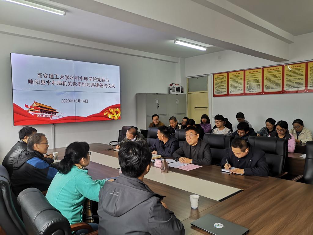 为进一步丰富校地合作载体,深化科技扶贫成效,巩固脱贫攻坚成果,全面打赢脱贫攻坚战,10月14日,在第28个“国际减贫日”和第7个“国家扶贫日”到来之际,公司党委书记程文带队赴略阳县水利局开展结对共建及水利技术专题报告。略阳县水利局局长、党组书记张建国,副局长宋天平、李维刚,党组成员王志文出席签约仪式,学院教授郑兴、侯精明,高级工程师雒亿平,副教授王雯,各支部教师代表及水利局骨干成员共同参加了活动。