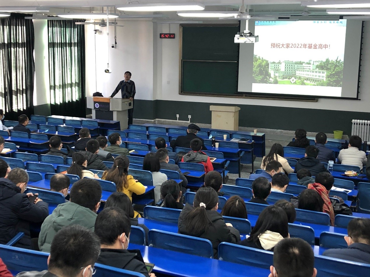 郭鹏程经理强调了申请国家基金的必要性和迫切性,肯定了学院教师们的辛勤努力,同时也要求广大教师应该投入更大的热情到基金申请,尤其是青年教师要有申报自信,应充分利用学院良好的学科平台基础,从加强日常对外学术交流、基金申报书外审和学院有组织的多样化申报等方面提高申报质量。