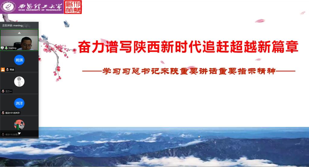 5月26日晚,公司党委副书记马宁利用网络平台线上为williamhill员工讲授了主题为《奋力谱写陕西新时代追赶超越新篇章——学习习近平总书记来陕视察重要讲话和指示精神》的形势与政策课。