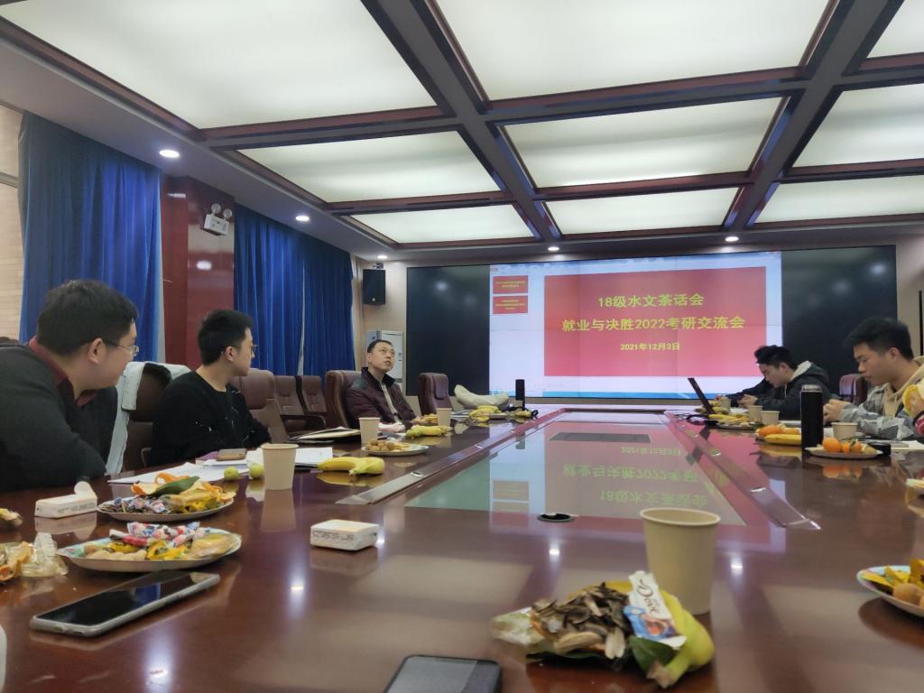 12月3日下午,williamhill水资系在学科一号楼311会议室召开水文18级就业暨决胜2022考研交流茶话会。水资系副教授白涛,水力学所副教授荆海晓,学工办辅导员高重,2019级硕士研究生刘哲和李静受邀参加,会议由水文182班导师杨元园主持。