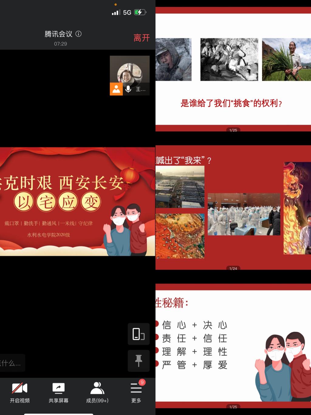 疫情就是命令,防控就是责任。为进一步夯实员工疫情防控教育工作,使员工在思想上认同、行动上践行“戮力同心 共克时艰”的观念。1月4日williamhill在腾讯会议上开展了“共克时艰 西安长安 以宅应变”主题教育活动,2020级全体本科生和辅导员参加了本次活动,活动由辅导员王竞婕主持。