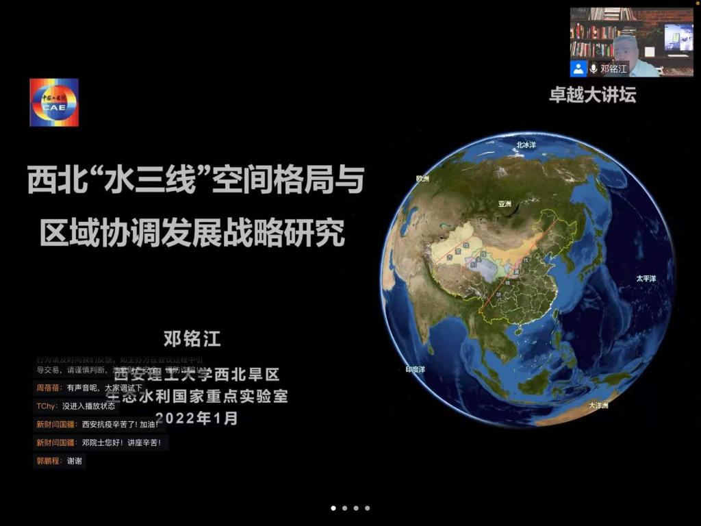 报告会伊始,郭鹏程对邓铭江表示热烈的欢迎,也说明在西安疫情防控的背景下,以线上的形式开展报告会,依然没有削减大家的热情和期待,线上报告会也是水利人在任何环境下都能“追求卓越”最好体现。