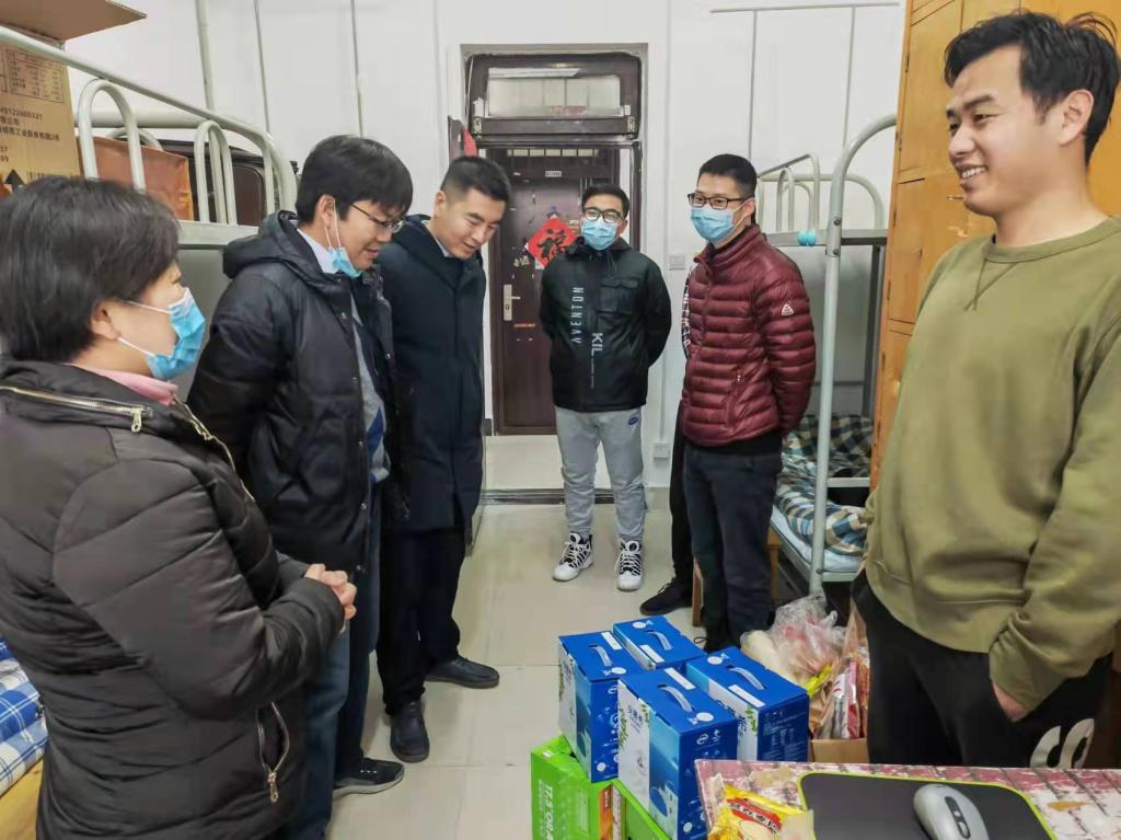 在员工集中住宿的六号公寓里,院班子成员与4位员工亲切交谈,仔细询问了每个人的假期安排及家乡疫情状况,并与两名博士生就正在撰写的论文情况进行了交流。郭鹏程叮嘱员工,要常与亲友保持联系,送去祝福,并坚持每日报平安。他要求,留校员工要持续做好个人防护,严格落实疫情防控措施;要严格遵守校纪校规,注意在校安全,特别是在宿的用电安全。此外,公司还为员工送去了新年慰问,期待大家带着学校学院的祝福度过一个温暖且有意义的春节。