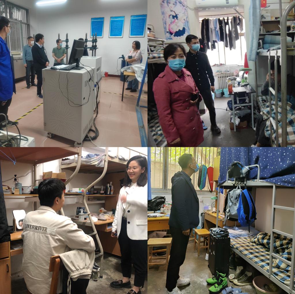 在员工宿舍,李红英和辅导员们与同学们亲切交谈,提醒同学们要遵守校园安全管理规章制度,坚持做好疫情防控工作,自觉维护宿舍安全、保持宿舍卫生整洁,积极营造安全、文明、健康、舒适的学习生活环境,携手共建文明校园。