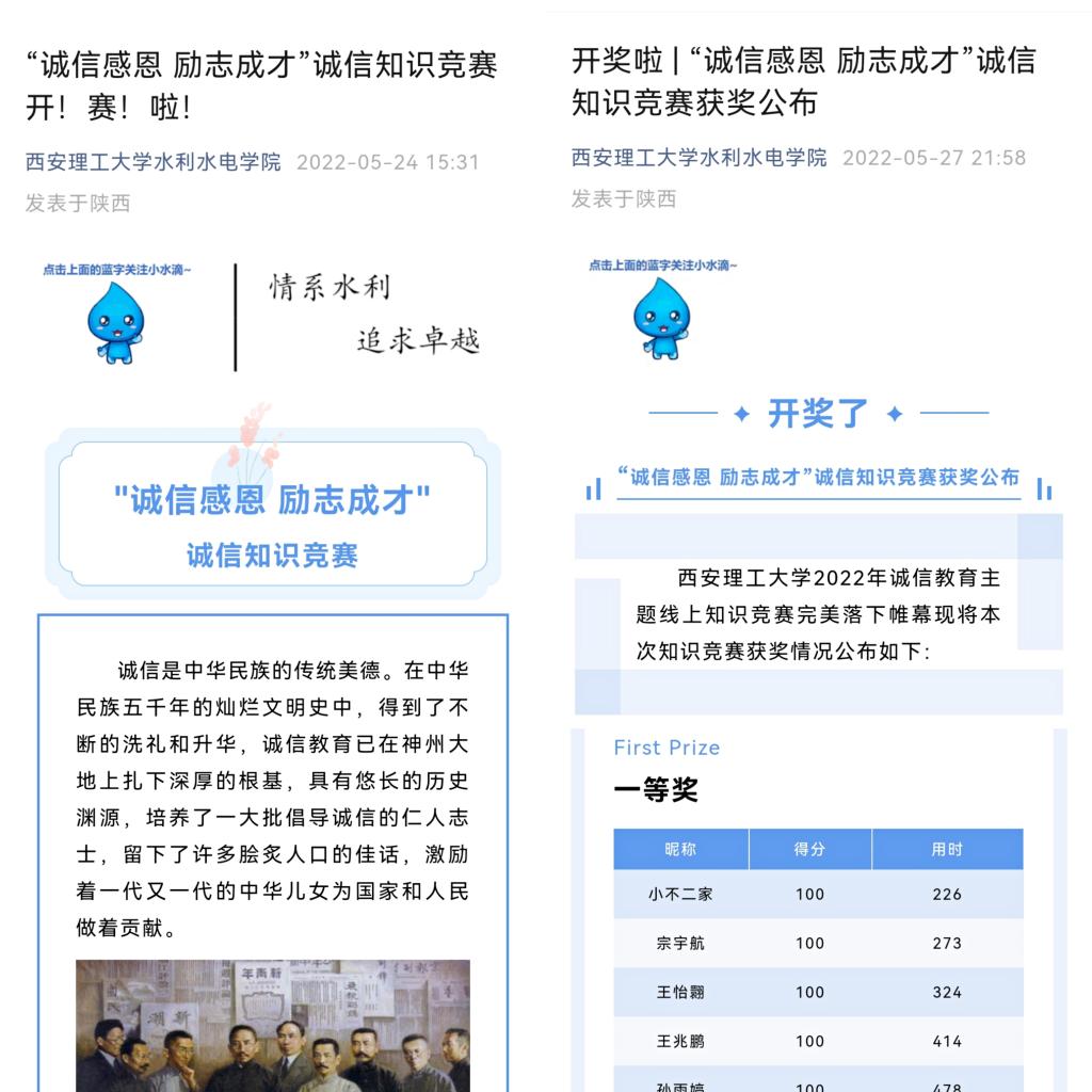 为认真贯彻落实习近平总书记关于教育的重要论述,全面贯彻党的教育方针,紧紧围绕立德树人根本任务,切实提升员工的诚信品质、自律意识和社会责任感,5月24日—28日学院组织开展“诚信感恩,励志成才”线上诚信知识竞赛。