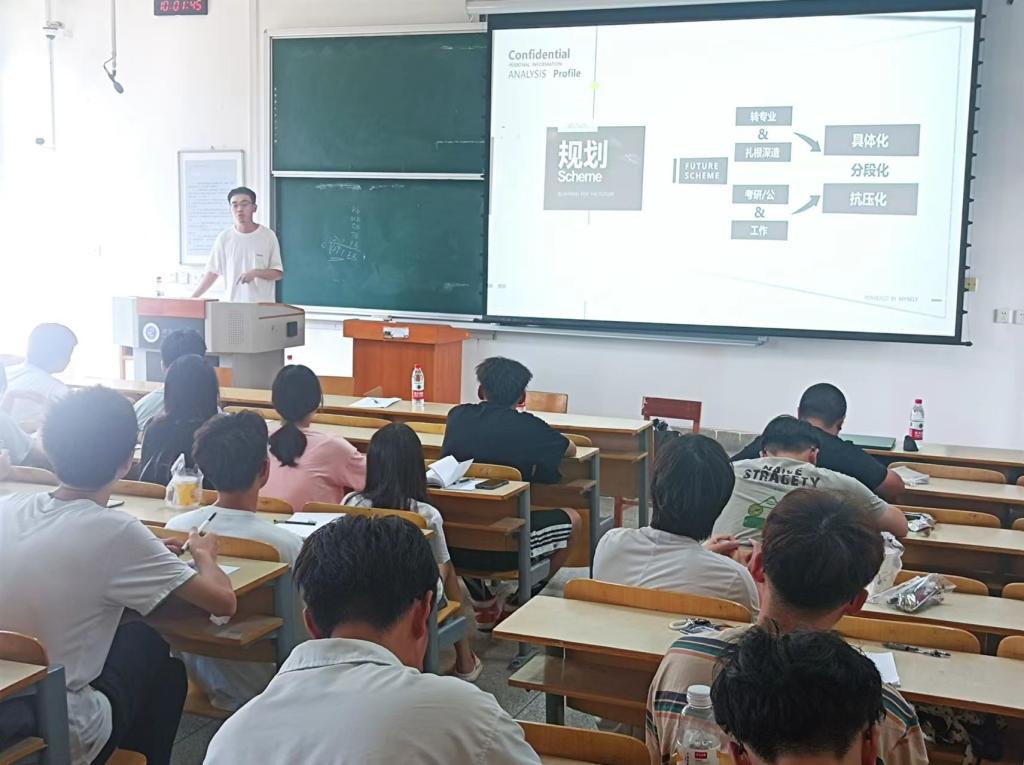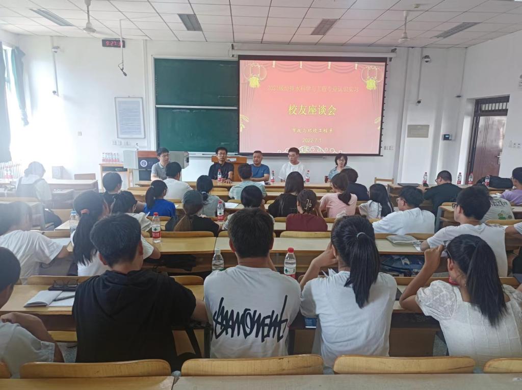 王东琦首先对两位员工和优秀毕业生代表做了简要介绍。曹俊峰、卢科锋两位员工结合自身学习和工作经历与在座老师、同学开展深度交流,介绍了当年的求学过程,工作后对专业新的认知和感受,为同学们分析了给排水专业的工作内容和发展前景。希望同学们珍惜现在良好的学习条件,在学习、工作中保持一颗平常心,脚踏实地,积累沉淀,做好本职工作。优秀毕业生陈凯结合自己四年的学习感受,从课程学习、参与科研、科技竞赛等方面与同学们充分互动,分析了如何在繁杂的信息资源中获取有效信息,如何以自律的学习、生活状态度过大学时光。