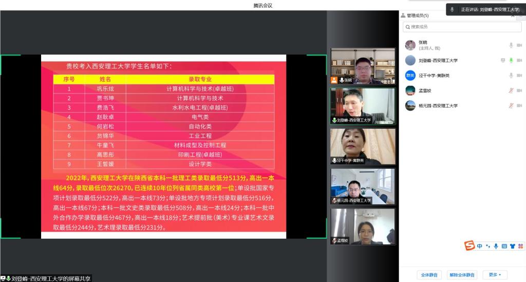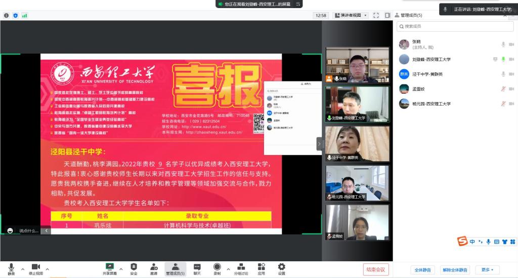 本次线上交流会延续了公司与泾干中学的生源基地合作关系,宣传了公司的招生教学工作,促进了中学对公司的了解。