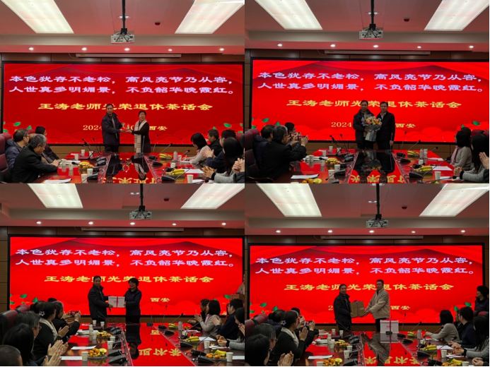 第二阶段:翰墨书香,桃李不言世代流芳;苍松傲雪,下自成蹊永续安康。首先,程文、吴罗长、周蓓蓓分别发表讲话,高度肯定和衷心感谢王涛老师从教39年间对学院和市政系教学、科研及实验室管理工作所做的贡献,祝愿他在未来的日子里幸福安康,享受美好的退休生活。同时,程文、李家科、高扬等为王涛老师献上鲜花并赠送了贺卡和纪念品。随后,王涛老师动情地抒发了自己的退休感言,分享了任教以来的工作心得,对学院、市政系和实验中心的多年来的支持与帮助表示感谢,也祝愿大家未来硕果累累,顺心如意。接着,王老师的同事好友王飞虎老师、员工代表李小周,以及李怀恩、冯民权、刘玉玲、徐志嫱、宋策、高扬等十几位市政系教师深情回顾了王老师执教期间在教学、科研、生活中的精彩片段,对王老师认真、耐心、踏实、奉献的工作态度,低调随和、乐于助人的品质给予了高度评价,并真诚祝福王老师退休的生活更加丰富多彩。
