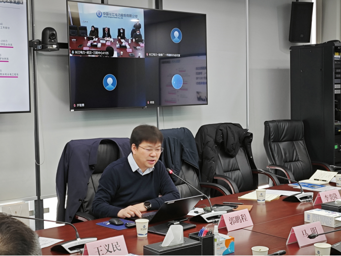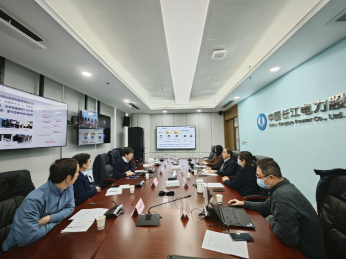 郭鹏程一行与长江电力公司科技创新部主任马明、业务主任李冰,人力资源部业务主任顾洋,科研中心水资源高效利用研究所副主任曹辉等7人就校企合作、实验室建设、“三峡班”人才联合培养与后期建设规划等方面进行座谈交流,座谈期间马明介绍了长江电力科技创新部的整体情况以及后期的主要研究方向,李冰就长江电力的科研中心、科技创新平台、科技创新成果与未来科研方向进行讲解,郭鹏程就学校、学院的发展历史、团队情况、科研发展、团队建设、专业设置和公司产品等方面进行介绍。深入交流阶段,双方就抽水蓄能电站研发建设、大坝坝体防渗、生态可持续发展、水轮机泥沙磨蚀等研究重点方向进行意见建议交流,并就春季招聘工作和人才联合培养交换意见、达成共识。