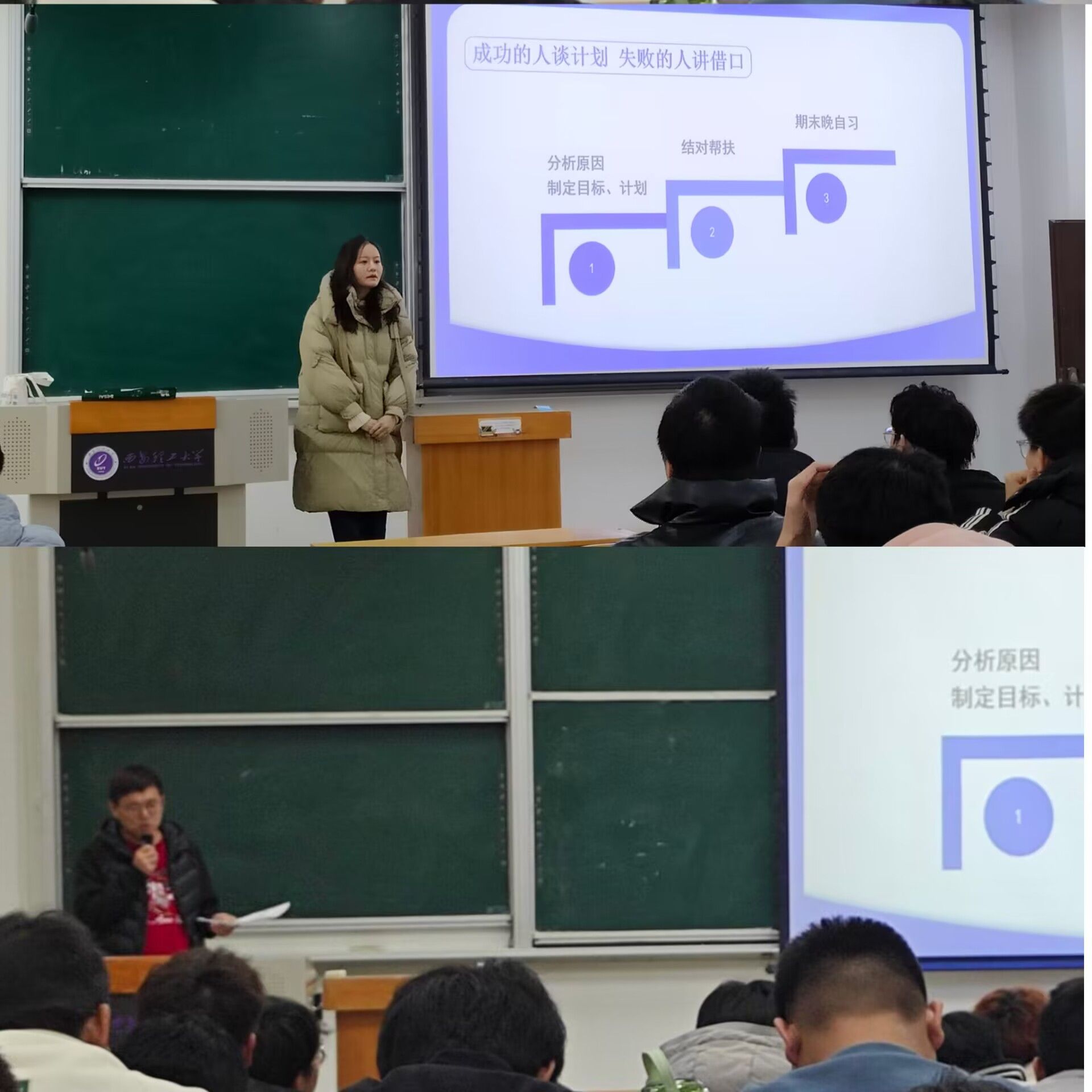 会上,辅导员对上一学期各班级的平均学分绩点、年级加权平均分等进行了概括性总结,并详细阐述了“知行互助”学业发展的具体内容,以期在新学期助力员工有效提高学业成绩。随后,同学们提出了自己在学业方面的困惑,大部分同学认为自己自律性不足、学习方法不当以及缺乏明确的学习目标。辅导员们针对同学们的问题逐一进行解答和分析,对同学们的诉求予以回应,助力同学们克服不足,树立信心,从而逐步提高学业成绩。