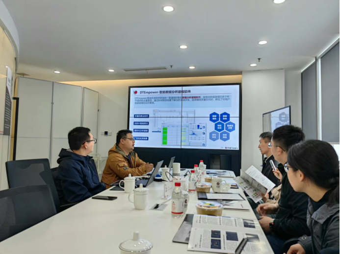会后,调研组一行人前往南京天洑软件有限公司与副总裁冯克列、工程师韦广健和金云峰进行交流,讨论了AIPOD智能优化软件和DTEmpower智能数据建模软件等AI算法与技术在水利工程建设、灾害预警、洪水预报、本科数据建模教学等方面的应用,交流了新型数据建模软件用于本科教学中的实践进展。