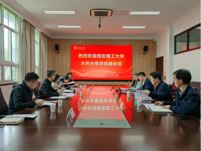 石朋书记对调研组一行人的到访表示热烈欢迎。石朋书记和刘登峰副主任分别介绍了学院与系所的历史沿革、专业设置、团队队伍、办学历程与科学研究等方面的成果与特色。任黎副经理和汪妮教授分别介绍了各自水文与水资源工程专业培养方案设置、课程学时分配、教学实验及实践教学等多方面的主要内容。