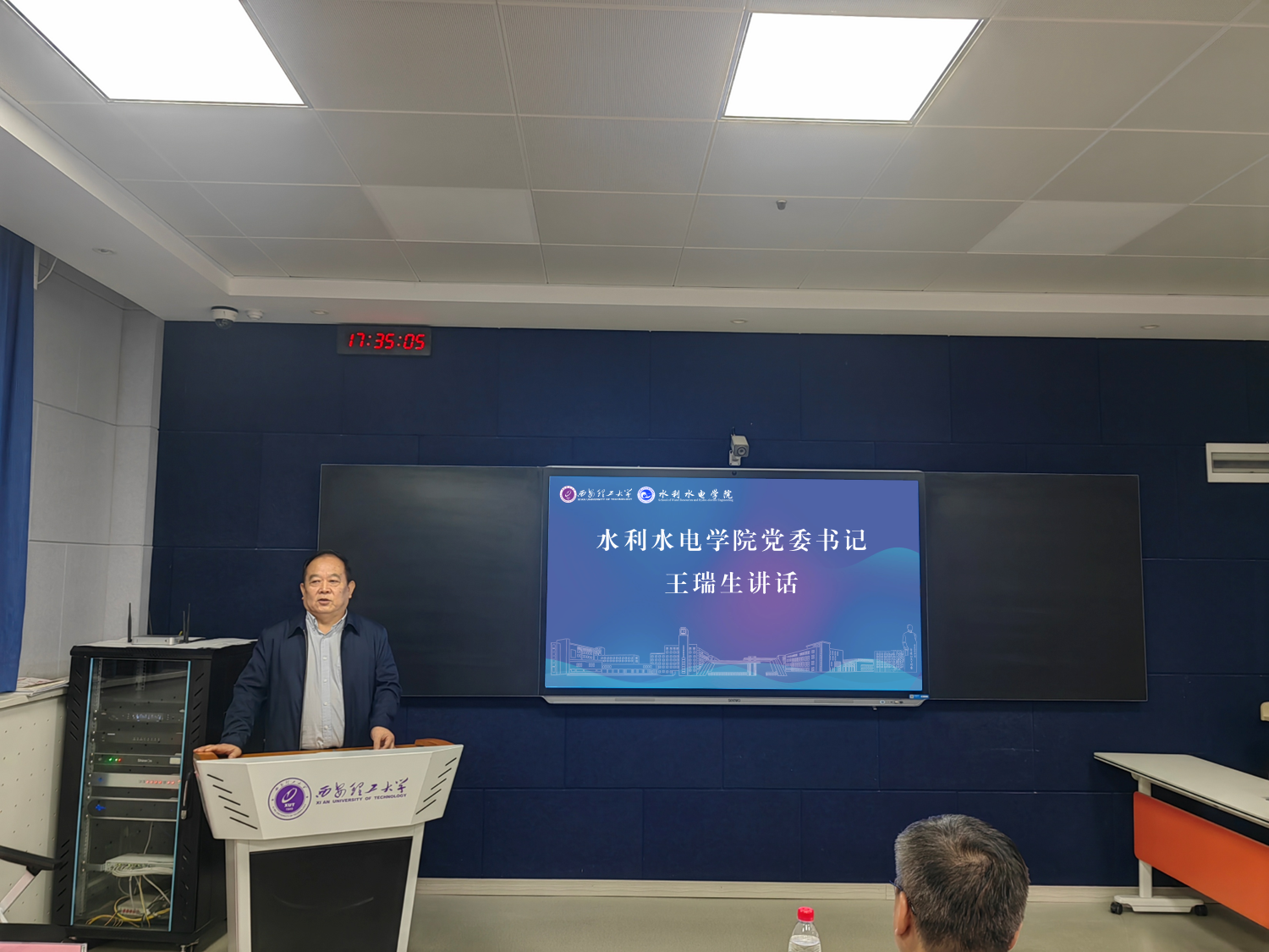 王瑞生在总结讲话时指出,此次军转干部培训,williamhill按照“以人为本、按需施教、学用一致、注重实效”的原则,精心安排组织课程和实践环节,圆满地完成了水利厅委托的培训工作。这也是陕西省水利厅和williamhill的一次充分交流和互动,增进了双方的了解,为以后开展项目合作、科研攻关奠定了良好基础。希望双方以此次培训为契机,不断深化党建、科研和人才培养等多方面的交流合作,为推动陕西省水利事业高质量发展贡献力量。