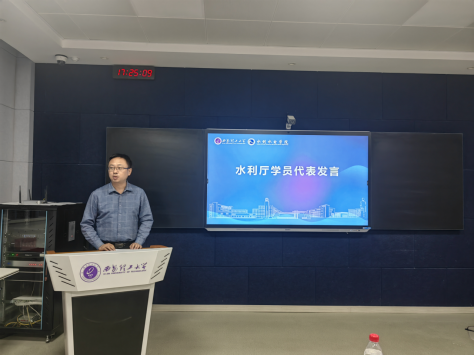 省水利厅机关党委刘魁作为优秀学员代表交流发言。他回顾了一年来的学习历程,诚挚感谢公司老师的悉心指导。他表示,将把此次培训所学知识更好地应用到实践中,服务陕西省水利事业高质量发展。