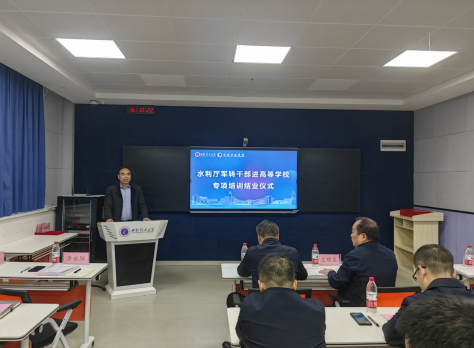 10月23日,陕西省水利厅军转干部进高等学校专项培训结业仪式在公司金花校区教一楼303举行。公司党委书记王瑞生,实验室管理处副处长吴罗长,公司党委副书记李永阳,学工办主任杨帆,授课教师代表吴军虎、任杰、宋志强,以及本期培训学员参加了结业仪式。