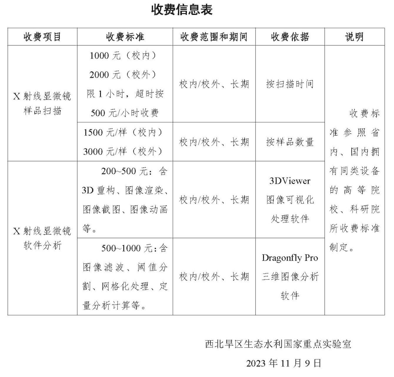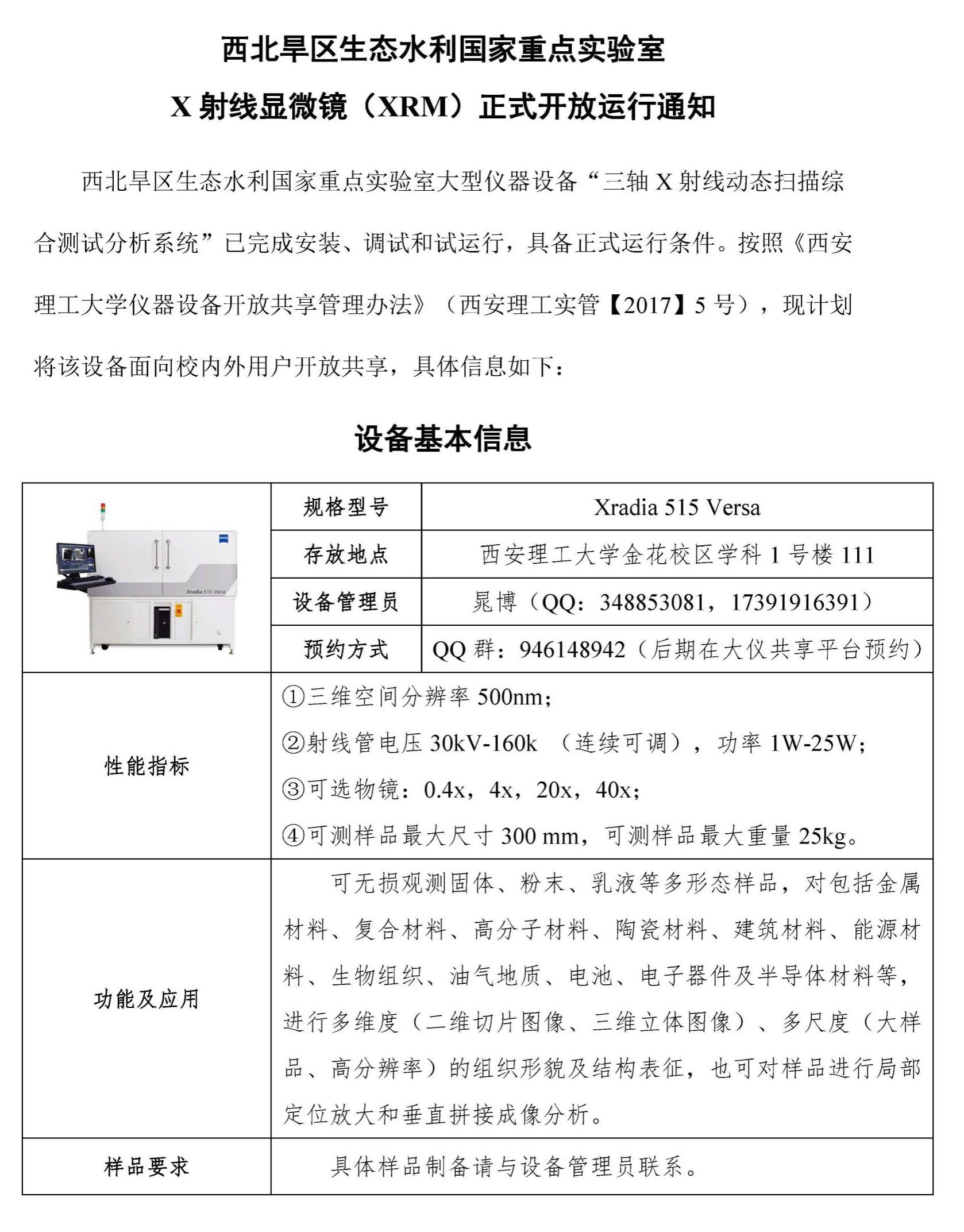 西北旱区生态水利国家重点实验室X射线显微镜(XRM)正式开放运行通知